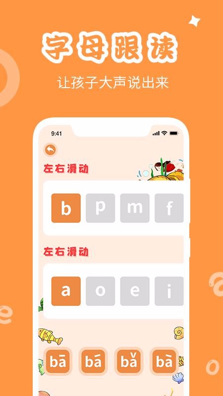 1、提供了发音功能,结合插图或动画的形式,可以播放各拼音的发音进行收听;