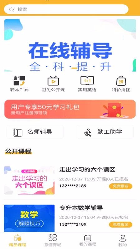 1、提供了限免公开课,用户可以免费报名,准时观看直播课程;
