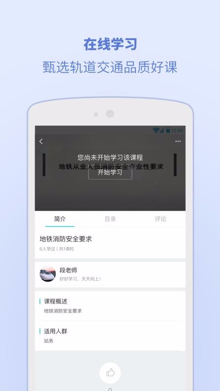 2、显示丰富的简介内容,该简介栏下面提供讲课老师、课程概述和适用人群的信息;