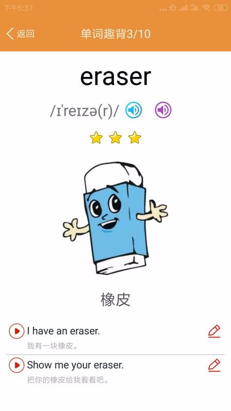4、通过星级的形式标注了各单词的难度,比如三颗星、两颗星等,更加形象;