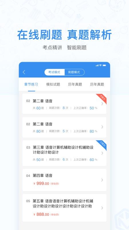 2、应用中有大量的历年真题,让用户能够快速进行真题练习,掌握考试节奏;