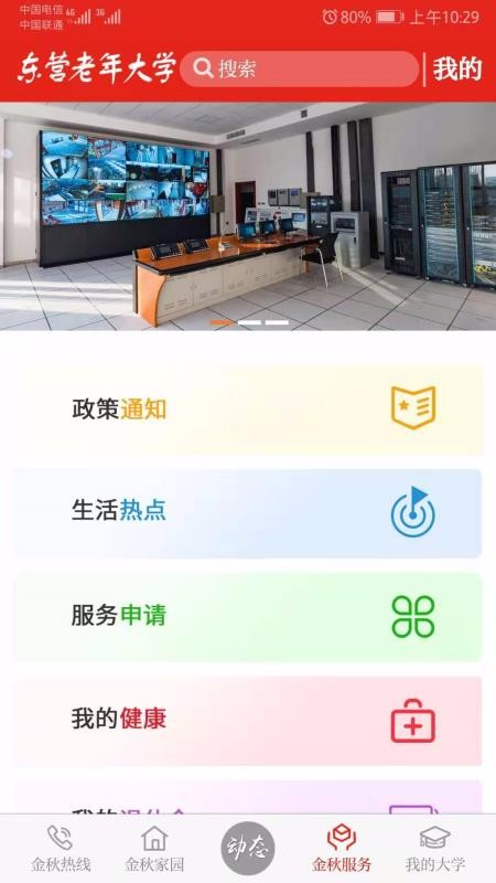 东营老年大学是一个专属老年群体用户的学习平台,开设了我的大学、金秋服务以及金秋家园等学习中心;平台汇总了海量的线上活动信息内容,这些活动内容带给老年人更多的选择,可以通过平台的支持学习、资讯阅读以及活动参与等方式来合理利用自己的时间,让自己的老年生活过得更加充实;上面不仅提供了丰富的学习服务和活动项目,同时还开设更多便捷的服务中心,这里有政策通知、生活热点以及服务申请等多种服务项目,通过这些服务能轻松了解到近期生活热点事件,还能轻松管理自己的个人健康。