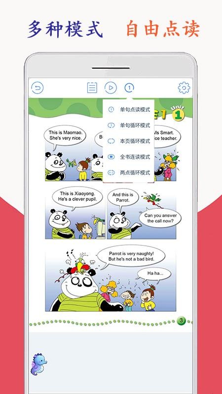 2、支持使用全课文音频循环播放,全书连读,哪里不会就点读;