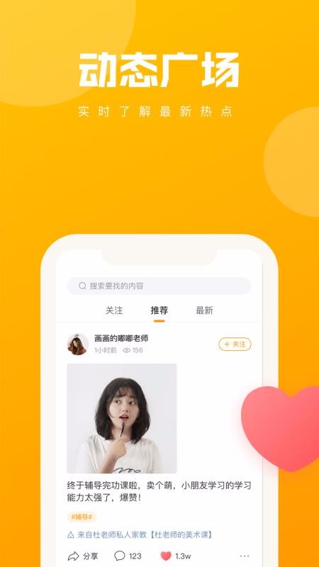 4、关注动态广场的老师,可以点击动态广场上面的老师关注标签关注老师;