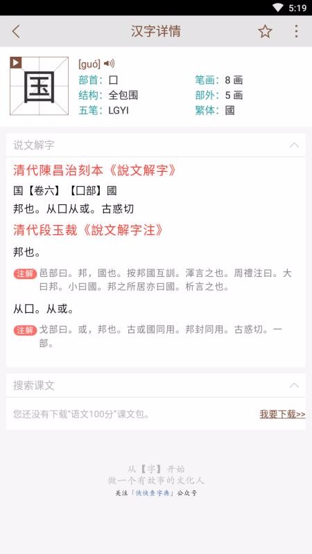 4、精心编写汉字的释义,详细解释了汉字,也显示了说文解字的内容;