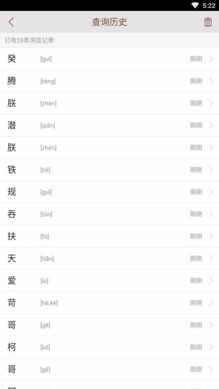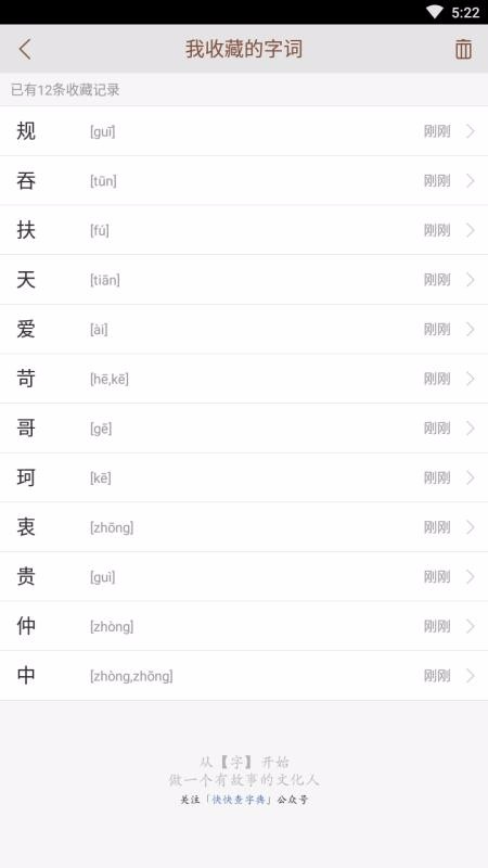 2、一键即可收藏汉字进行保存,通过列表形式展示了收藏的内容,支持管理该内容;