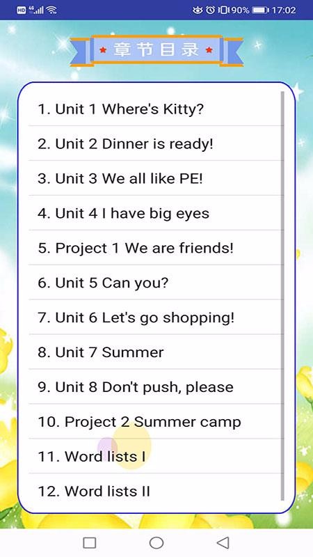 5、丰富的课本学习功能列表,该列表中涵盖目录、背单词、单词训练以及听力训练等;