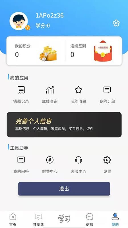 4、用户在软件中能够清晰看到自己的课程数量和参与的公开课数量;