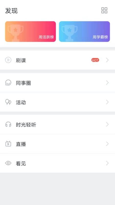 4、在发现页面,点击进入同事圈,可以在线发布学习动态,也可以实时进入直播课程
