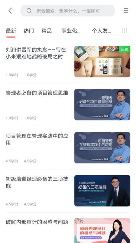 2、点击进入课程页面,了解最新、最热、精品课程信息,在线观看视频学习