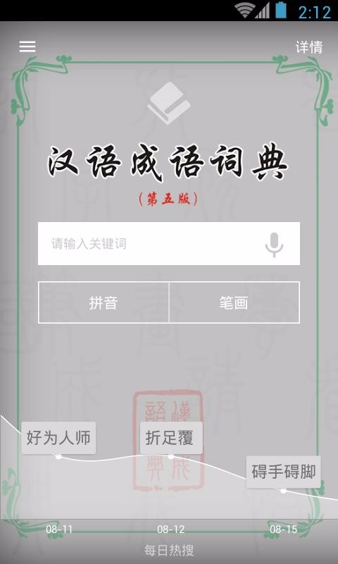 2、支持按照拼音或笔画进行查找,按照提示完成成语的搜索;
