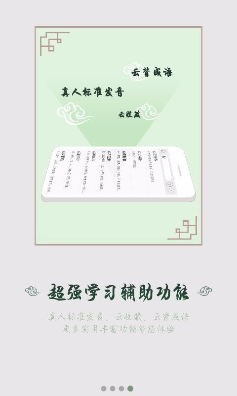 4、拥有丰富的学习辅助功能,包括真人标准发音、云收藏、云背成语等;