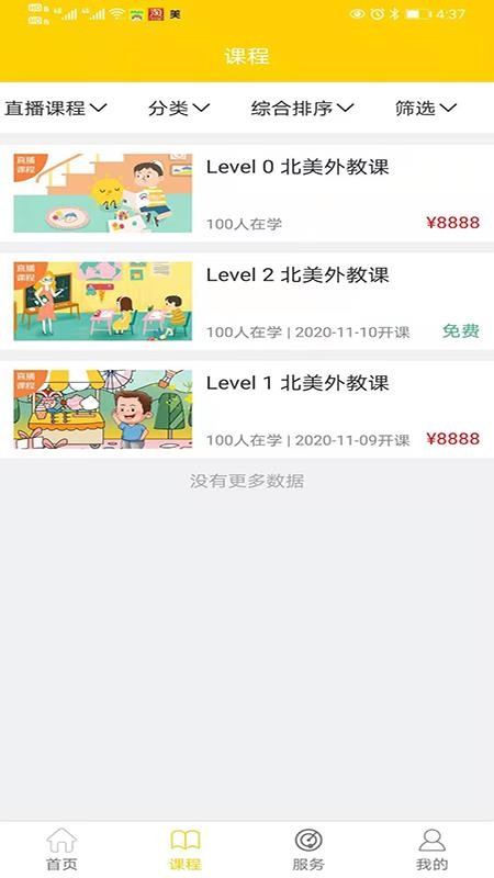 2、应用中有筛选排序功能,用户可以通过各种条件来对课程进行筛选排序;