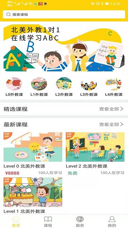 4、进入服务版块,快速购买各种课程套餐,在线测评自己的英语能力,领取各种专属福利