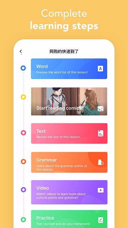 2、涵盖了学习的全流程,包括字词学习、语法学习、测试、练习、视频课程等;