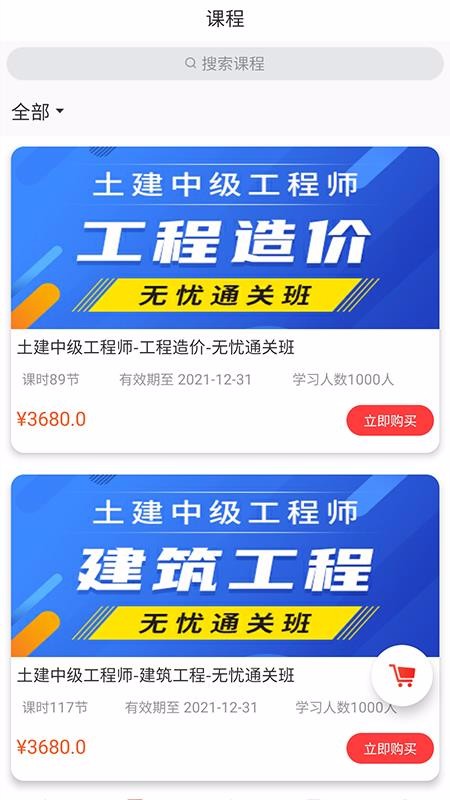 4、一目了然的课程基本信息,所有课程封面都展示课时、有效期和学习人数等内容;