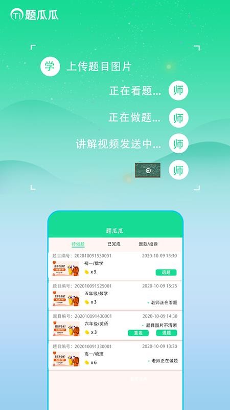 题瓜瓜是一款中小学生在线学习查询服务软件,在学习的过程中,需要不会的题目随时在线搜索查询,立即为学生提供详细的题目答案解析,可以通过了解解析来理解题目考点,理清题目的思路和考点,结合题目的解析来学习不同题型的知识内容,增加学生的知识储备量,让自己学习的更加全面; 同时软件中提供真人老师在线通过视频的方式进行题目解答,观看视频学习可以更加高效,视频的解析更加清晰,并且会实时统计学生查询题目的情况,这样就能够了解题目解析的信息,实时查看历史题目解析进行复习学习。