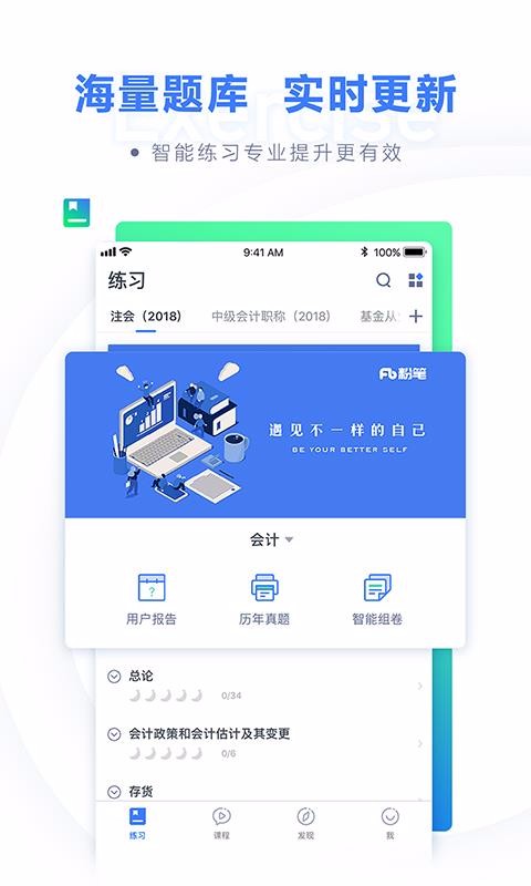 粉笔会计是一个财会类学习工具,帮助登录的用户一站式学习各类会计知识,无论是丰富的课程还是题库,都可以让用户便捷的完成学习和练习,并轻松进行备考;而且包含的会计考试类型也多样,注册会计师、中级会计职称、基金从业资格等考试,相关备考用户都可以下载该软件进行使用,而且系统会根据用户选择的考试类型,智能推荐适合的视频课程、直播课程、练习题库等,让用户轻松选择合适的内容完成学习;而在线学习结束后,还可以浏览丰富的考试资讯和行业动态,便捷了解财会信息和报考信息,还可以实现信息互动。