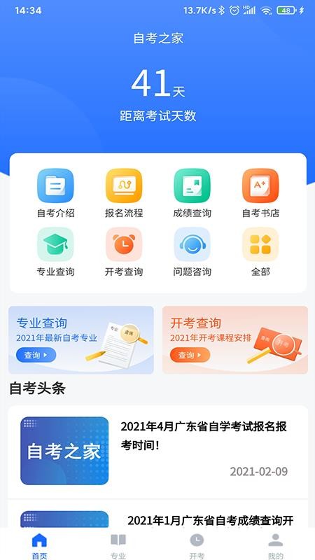 2、在这里,用户能够看到各种自考头条信息,了解考试报考时间和成绩查询时间;