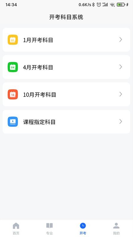 4、进入开考版块,查看不同月份的开考科目信息,根据自己的能力进行选择