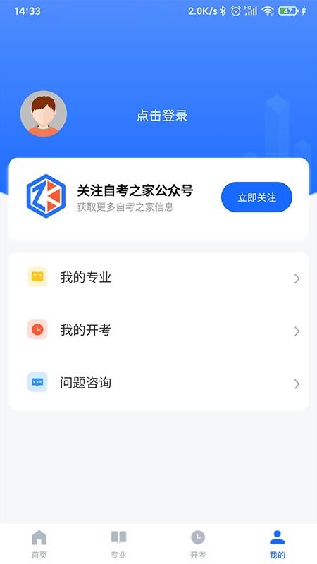4、在这里,用户能够一键关注自考之家的公众号来获取更多自考信息;