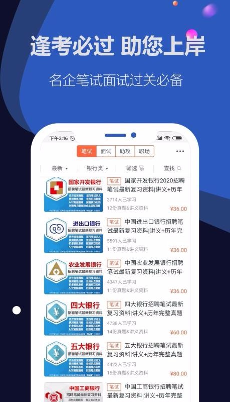 4、提供不同的备考课程版块,为用户提供了笔试、面试、攻略以及职场之类的课程;