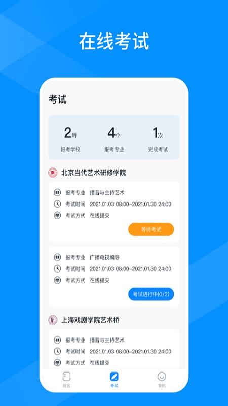 1、各种考试信息清楚的展示在平台里,在线能够快速的进行查看;