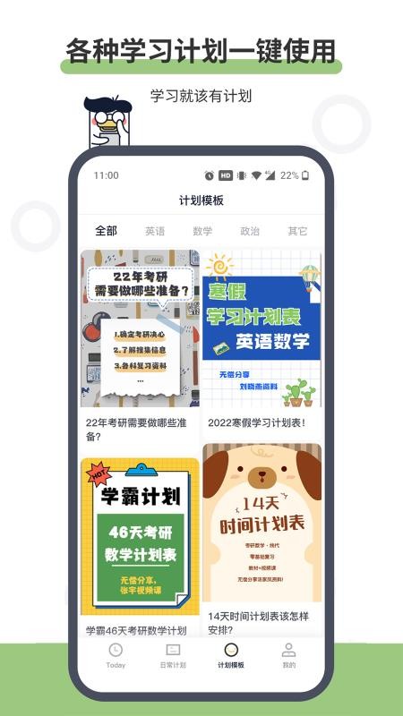 2、在这里,用户能够找到多种类型的计划模板,包括各个科目,满足不同用户需求;