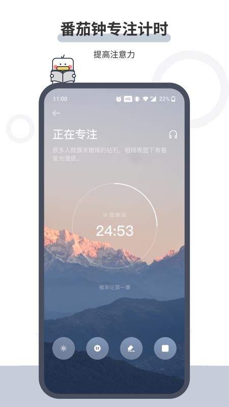 3、应用中有番茄时钟功能,通过倒计时来培养用户的专注能力,提高专注效率;