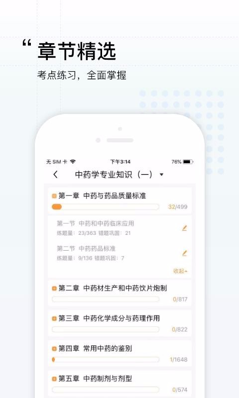 2、可以按照章节进行针对性的练习,每个章节也统计了练题量和错题数;