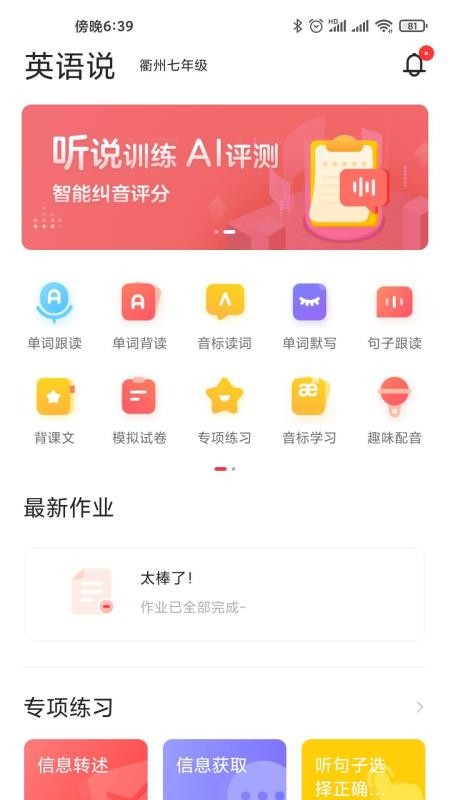 5、在平台里能够更好的朗读英语课文,增加用户的使用体验;