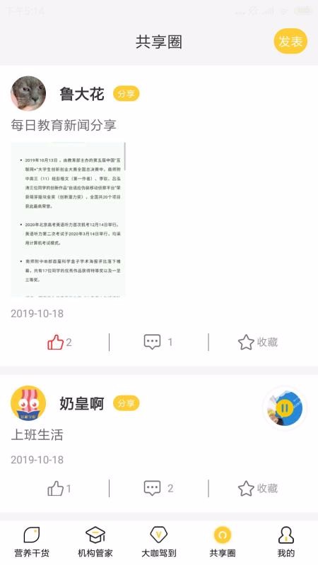 5、在共享圈中,用户可以浏览其他人发布的动态,并进行点赞、评论、收藏等操作