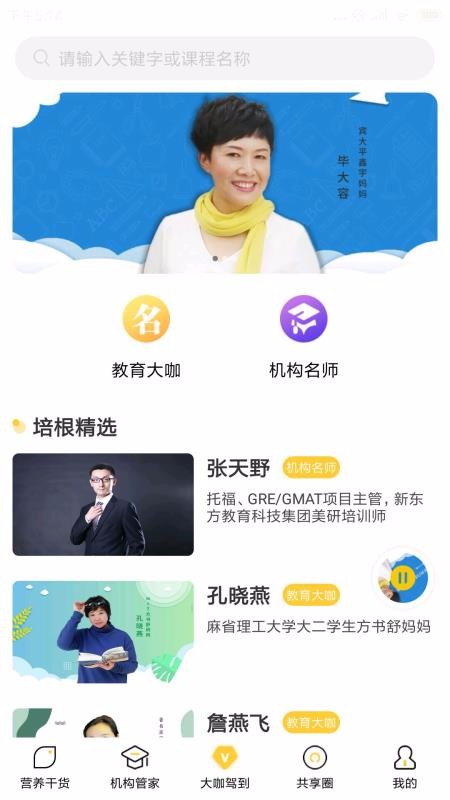 4、进入大咖驾到界面里,就可以查看平台推荐的教育大咖、机构名师等