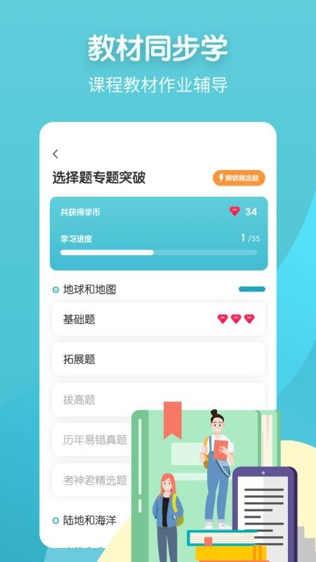5、提供教材同步学习功能,让用户可以同步学习课本中的知识点;