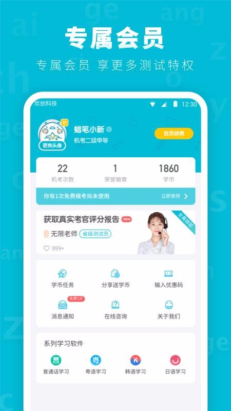 6、包含的普通话测试服务多样,涵盖了从报名、练习测试、学习分析、成绩查询等全流程;