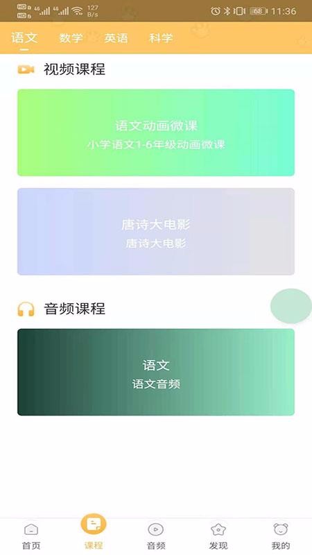 4、趣味的动画微课视频,课程中心给用户带来了1到6年级阶段的语文动画微课资源,内容丰富有趣;