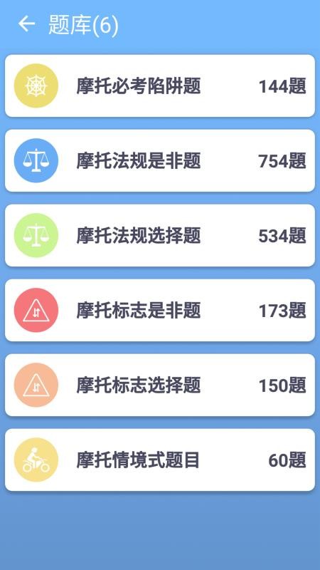 摩托车驾照一点通app是一款摩托驾考学习软件,让用户能够轻松学习各种摩托车驾考知识,顺利拿到摩托车驾驶证;用户通过软件能够找到更加全面的摩托车考试题库,通过题目练习来熟练掌握各个考点,更轻松的通过摩托车驾照考试;在软件中用户还可以在线对自己进行测验,从而了解自己的知识掌握情况,更加高效的进行查缺补漏,避免错过重要知识点;用户在这里能够看到详细题库解析,帮助用户更深入的了解题目,轻松记忆题目内容,掌握更高效的答题方法;快下载这款软件试试吧,在线练习各种摩托车驾考题目,轻松考试。