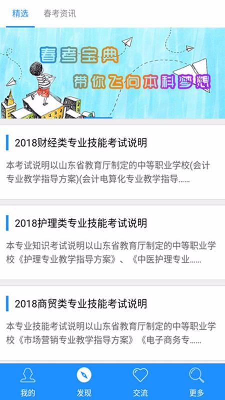 1、丰富的发现页面中心,该中心提供了精选的资讯和春考资讯栏目;