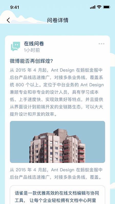 3、详细丰富的问卷详情内容,问卷里面展示每个问题以及相应的插图说明;