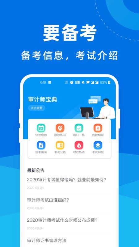 审计师宝典是一款审计师备考学习软件,这里有齐全的学习题库资源、考试介绍、报考指南等,在线通过每日一练、顺序练习、快速刷题等不同学习模式来进行学习,轻松掌握考试知识,并结合提供的考试介绍来制定自己学习的计划,在线实时学习,坚持每天学习进步,掌握更多的考试内容;在报考指南中展示了各年份报考的信息,及时阅读考试的公告内容,了解报考的条件、时间等,不仅可以学习题库的内容,也可以轻松了解报考的资讯,让考生时刻关注考试动态,这样就不同错过任何有关考试的消息,并顺利通过考试。