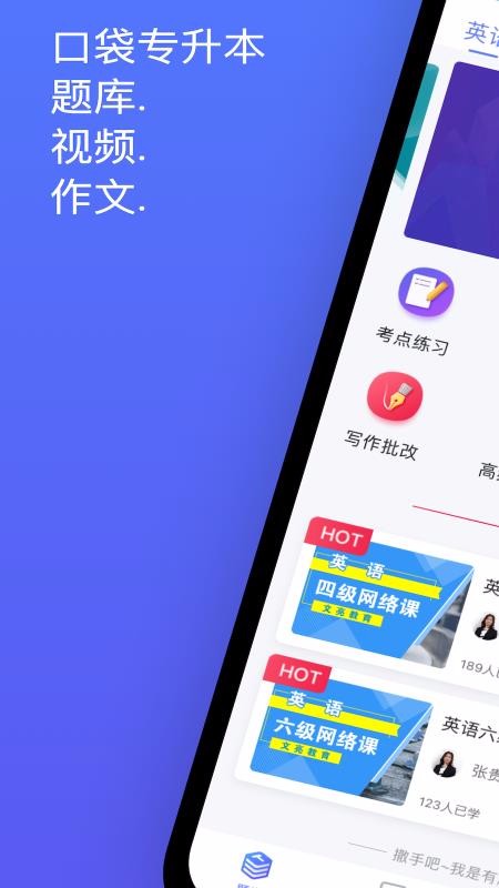增加了历年真题、高频考点、高频错题、作文批改等模块。