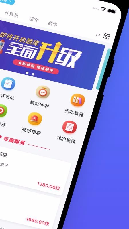 1、拥有丰富的科目划分栏目,其中涵盖英语、计算机、语文以及数学多种科目;