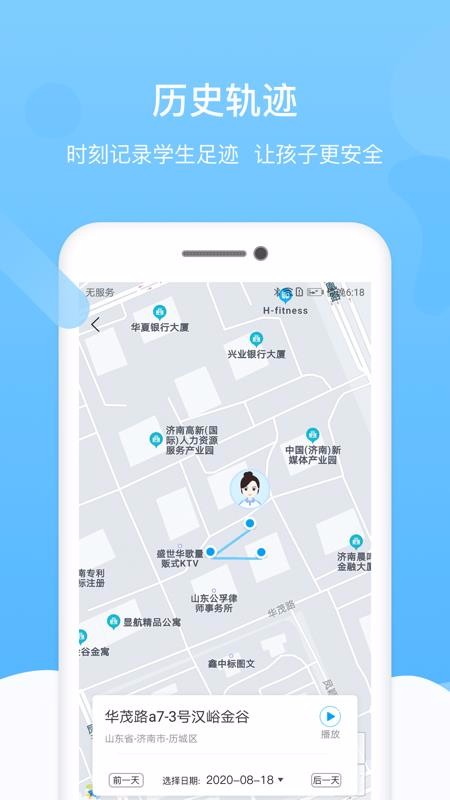 2、打开地图查看小孩定位,立即进入到小孩轨迹查询页面
