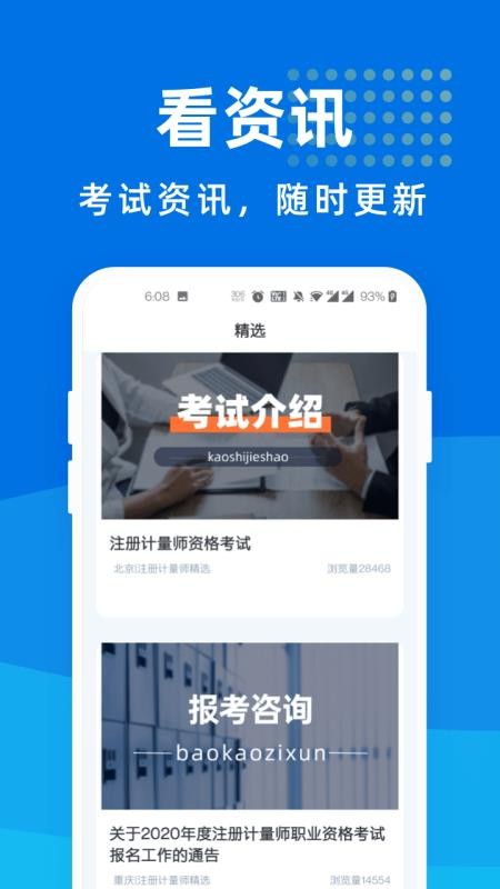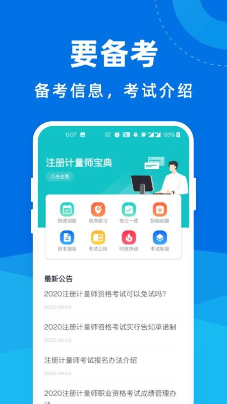 注册计量师宝典app是一款帮助用户高效备考注册计量师的学习软件,让用户能够了解更多考试信息,学习更多考试知识;用户在软件中能够更加便捷的进行在线刷题,轻松练习各种考试题目,从而能够掌握更多的考试知识,提高自己的考试通过率;通过软件用户可以看到各种考试相关的资讯内容,了解最新的计量师考试动态信息,从而能够更加轻松的应对考试,降低紧张感;在这里用户还可以看到更加全面的备考信息,让用户能够更顺利的报名和考试;快下载这款软件试试吧,在线进行题目练习,更加顺利的通过注册计量师考试。