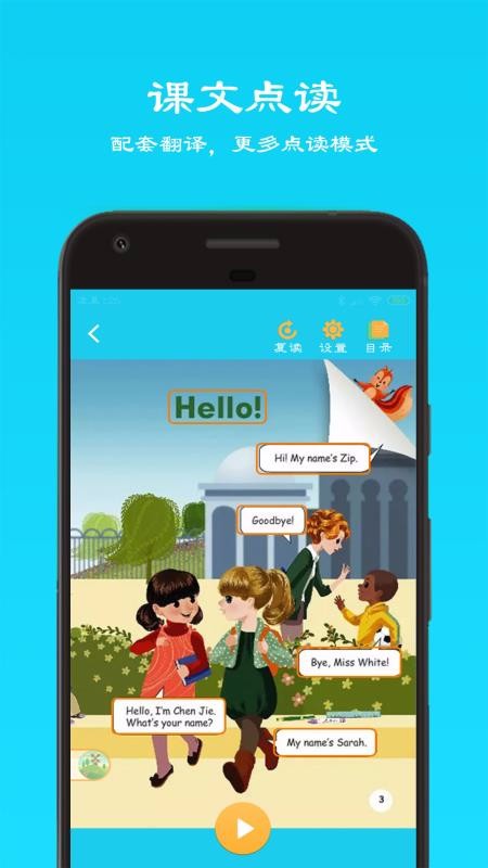 1、支持课文点读,自行选择点读的模式,并点击句子收听语音;