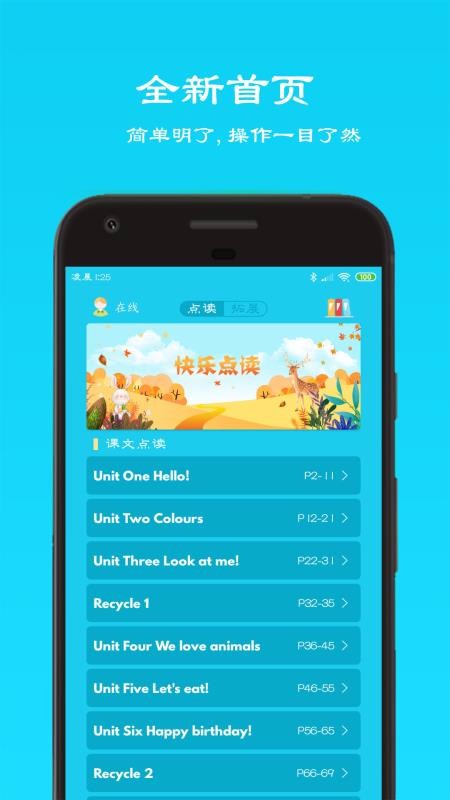2、进入首页中,即可选择点读或拓展查看展示的学习内容