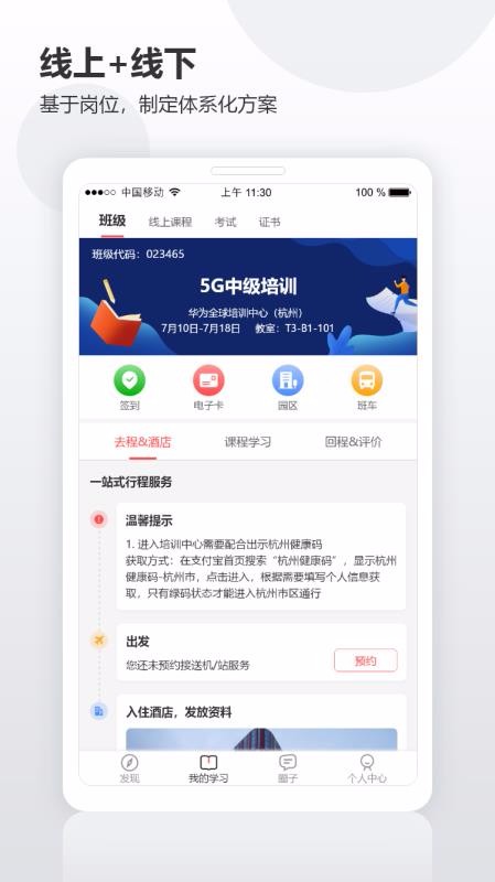 4、在线可以报名线下的培训服务,报名完成后,即可查看提供的一站式行程服务;