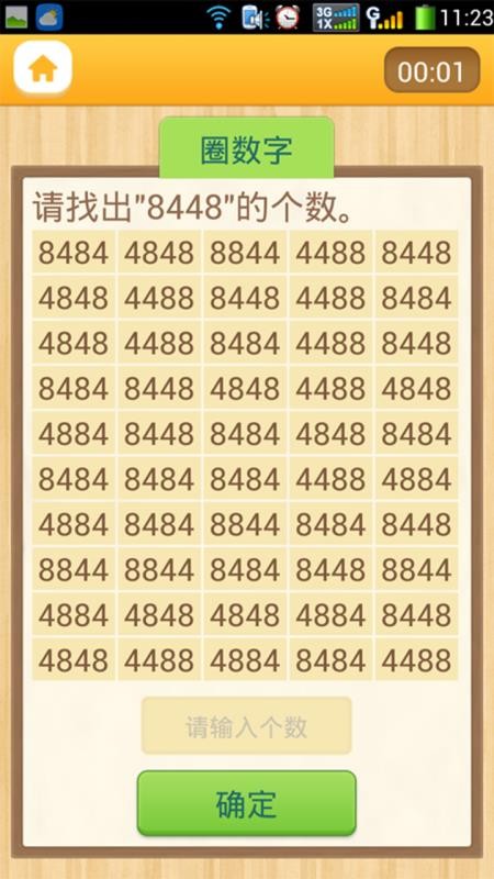 5、提供圈数字游戏,通过在大量数字中找到目标数字来锻炼孩子的观察力;