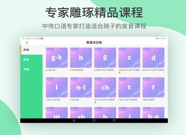 5、在普通话训练界面中,可浏览到各种各样的发音课程