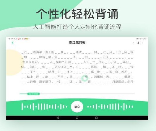6、拥有人工智能技术,为用户打造个人的定制化背诵流程,背诵文章变得更轻松;